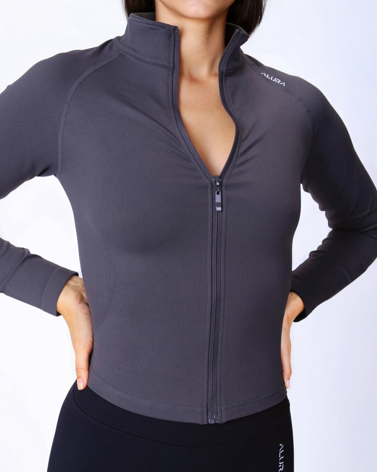 ALURA’s Unity Zip-Up Jacket, crafted from a light-weight, high-stretch fabric, delivers sleek performance with a sculpted, body-contouring fit. Designed with slightly higher-cut sides to subtly accentuate your waist, and finished with subtle ribbed side panels for a refined, athletic silhouette.